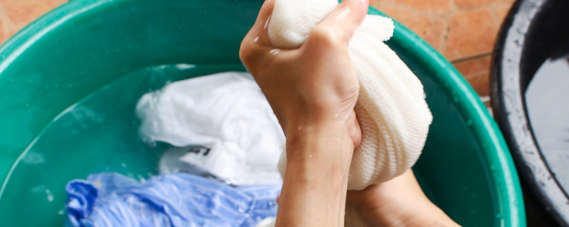 4、洗衣服时,在泡衣服的水中滴几滴84消毒液,搅匀,10分钟后再用正常洗法操作即可去除异味,晒干。