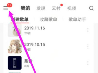 1、打开网易云音乐,点击上面的菜单按钮三,打开侧边栏。