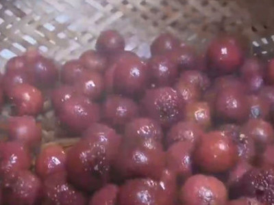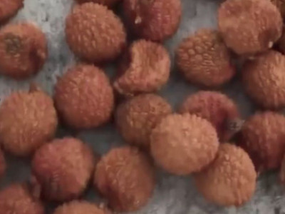 剪掉荔枝蒂后选出坏果,洗净后用开水烫5-10分钟。 2 晒干