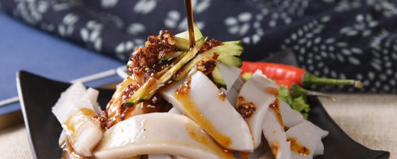 4、荞面凉粉:凉粉有两种,一种是用山药粉做的,一种用苦荞面做的。出售前一直泡在水里,顾客一到,便从水里捞出来用特制的“粉刀”切成细条,浇上盐水、酱油、辣椒油、醋、香油、味精、芥末、葱花,可谓应有尽有,五味俱全。再佐以黄瓜丝、萝卜丝、香菜、豆腐干丝,则相当可口。