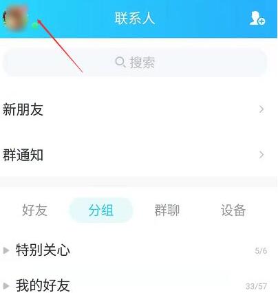 2、点击QQ页面左上角的QQ头像。