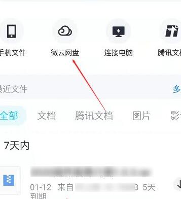 4、点击上方的“微云网盘”。