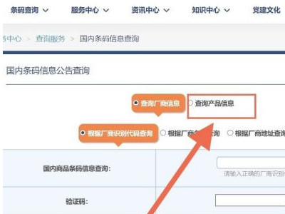进入到国内条码信息查询页面后,点击“查询产品信息”的选项,再输入产品条形码并点击查询。 4 点击指定处