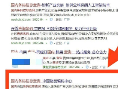 进入搜索结果页面,该页面有很多与搜索词相关的网页,点击国内条码信息查询即可。 3 输入产品条形码